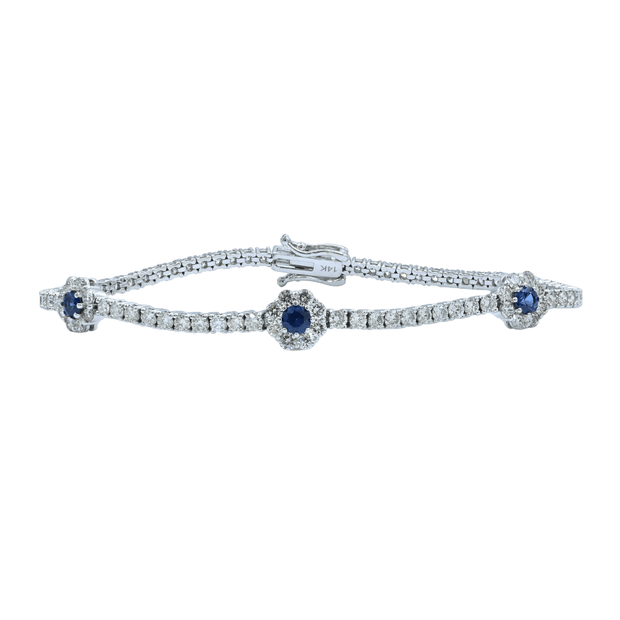 3 CT White Gold Flower Sapphire X Diamond Bracelet Copy