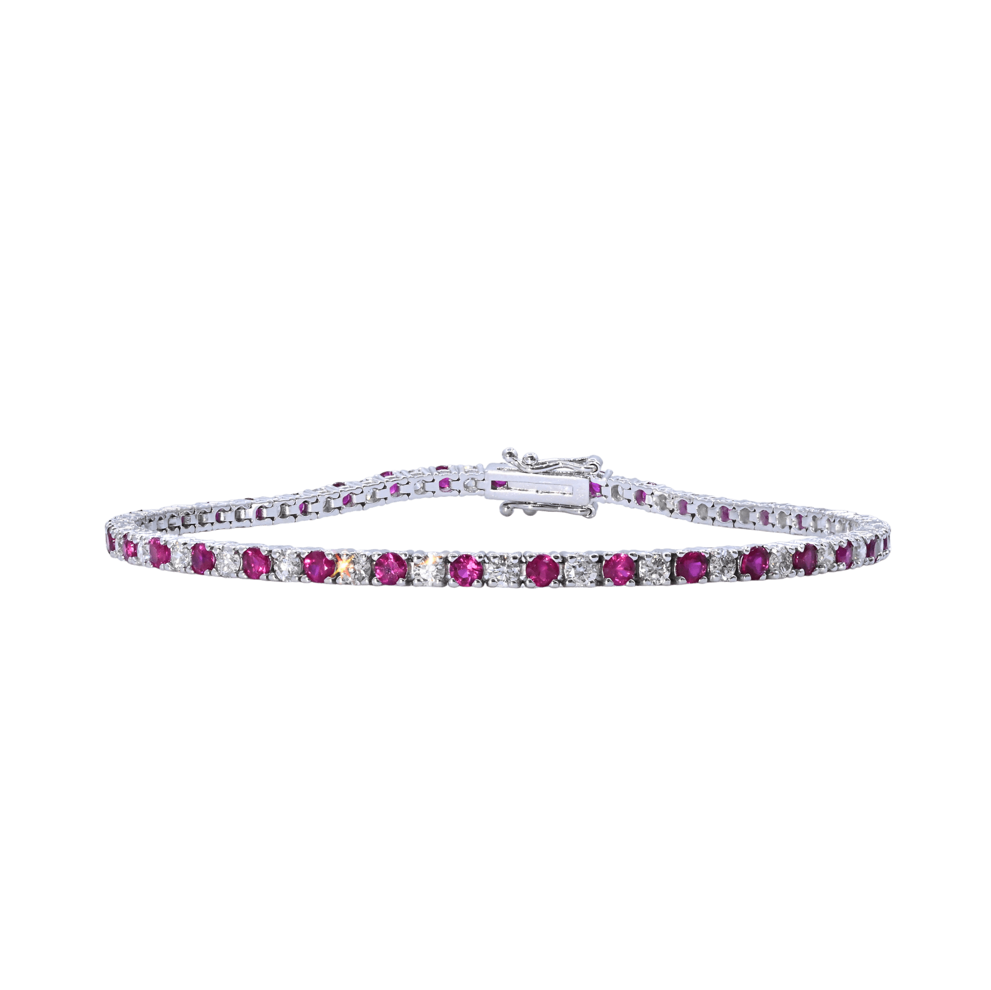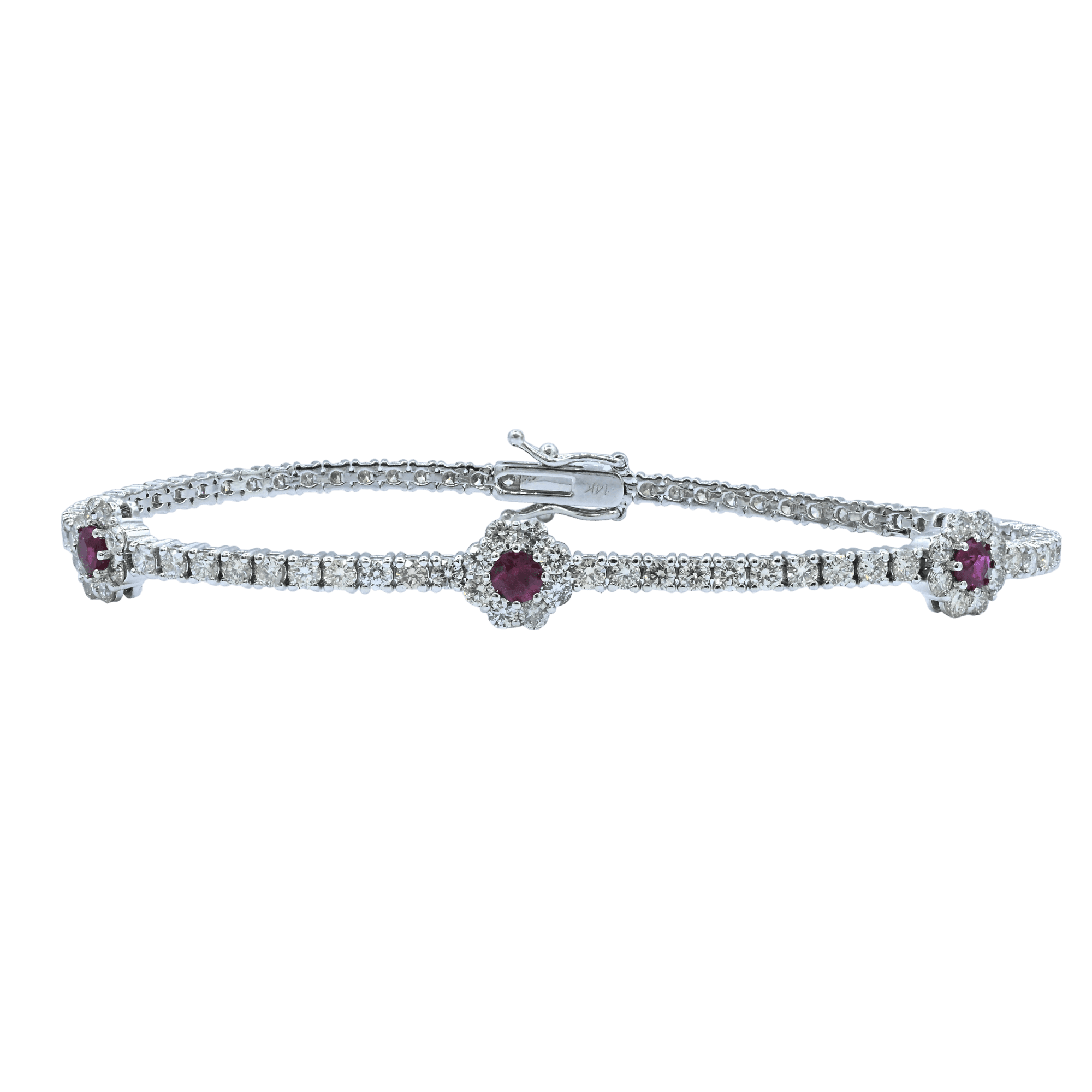 3 CT White Gold Flower Ruby X Diamond Bracelet
