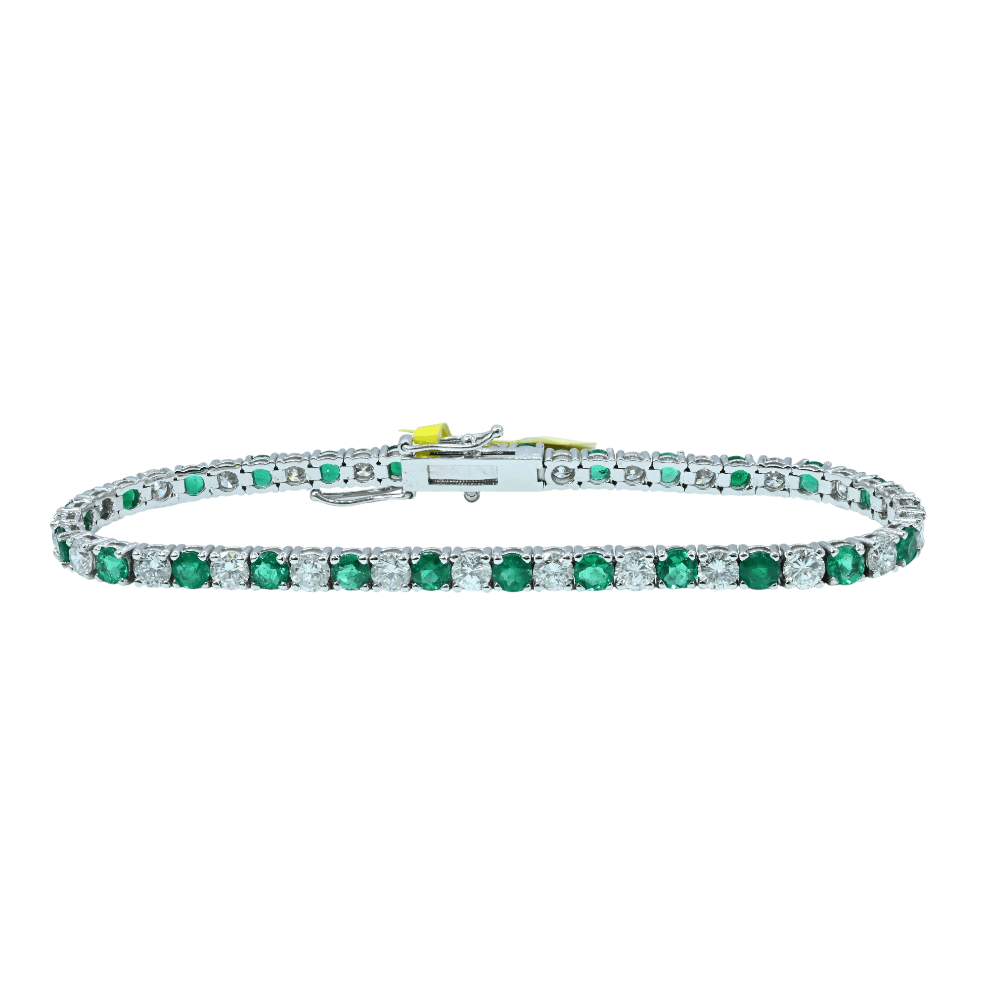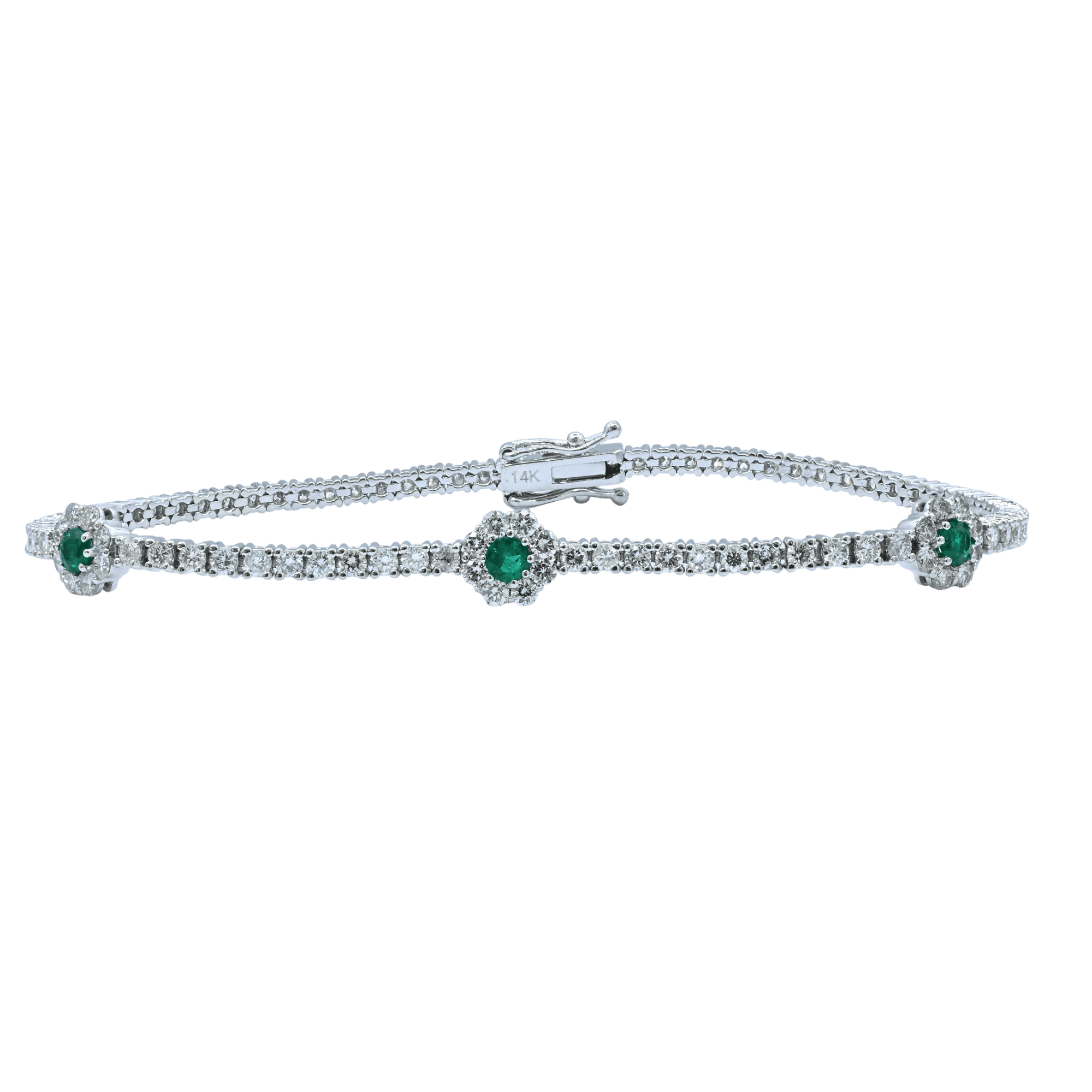 2 CT White Gold Flower Emerald X Diamond Bracelet