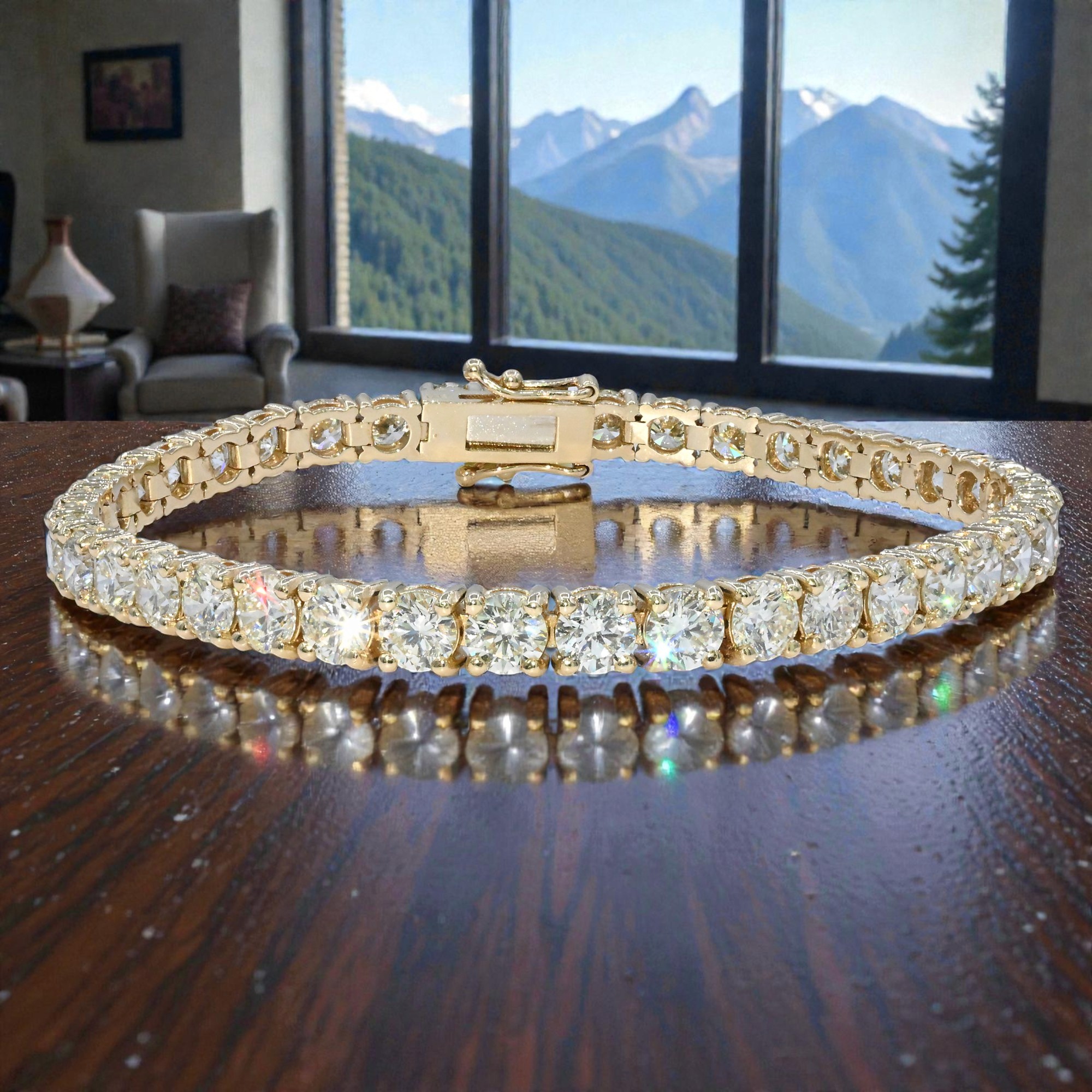 11 CT Diamond Tennis Bracelet, 14K Yellow Gold