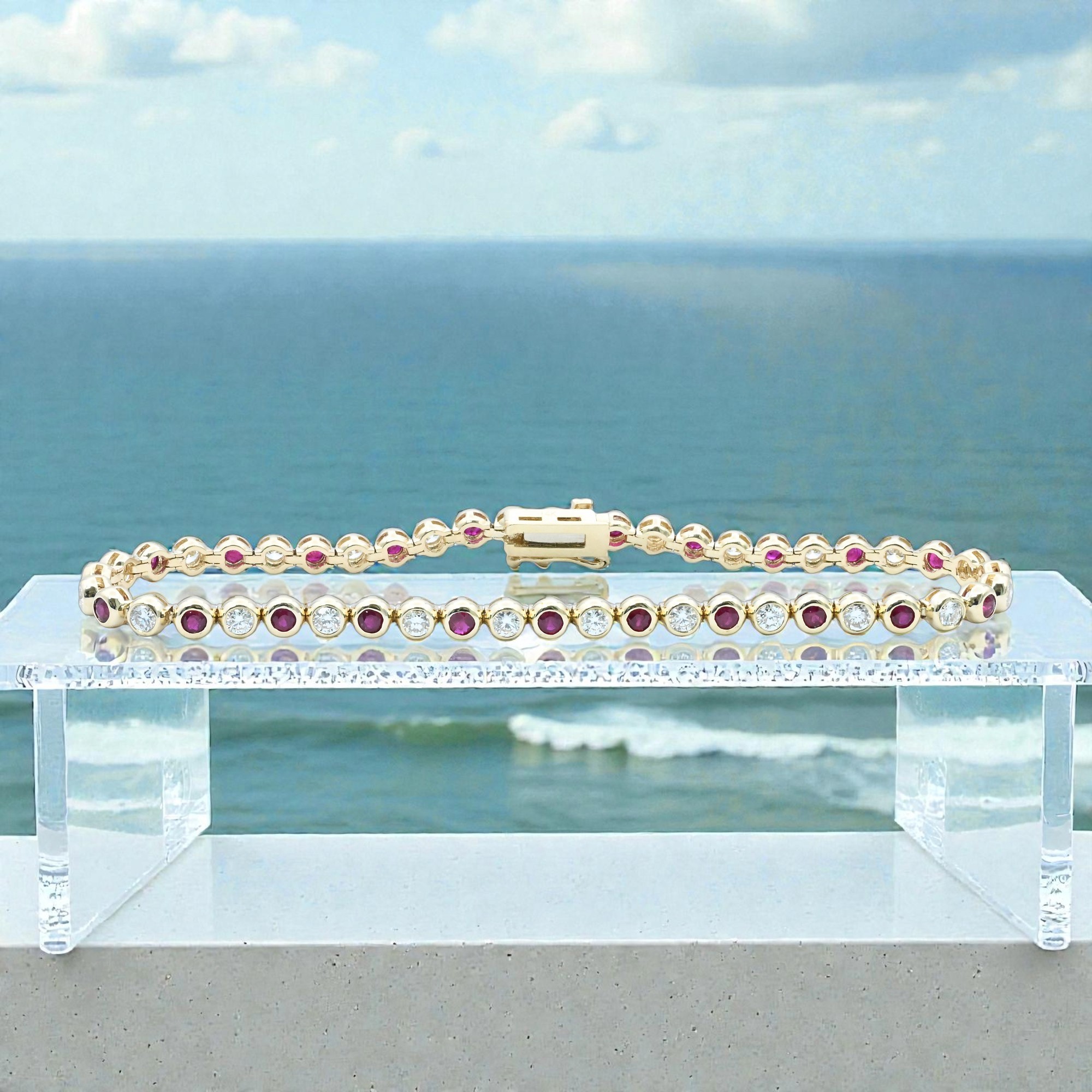 2 CT Alternating Ruby x Diamond Bezel Set Bracelet