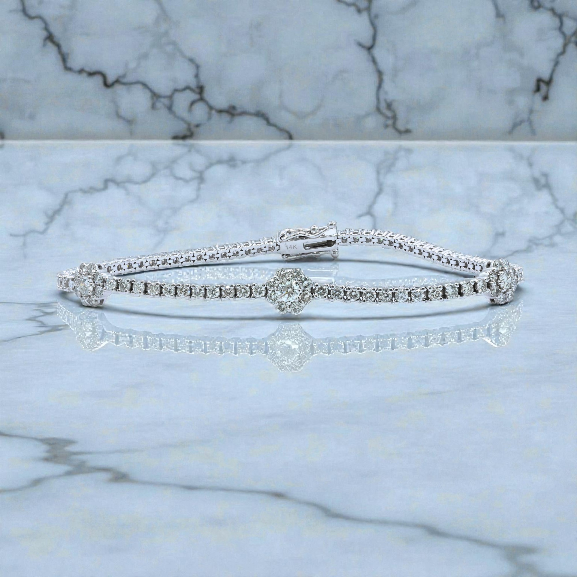 2 CT Flower Bracelet Diamond Bracelet, 14K White Gold