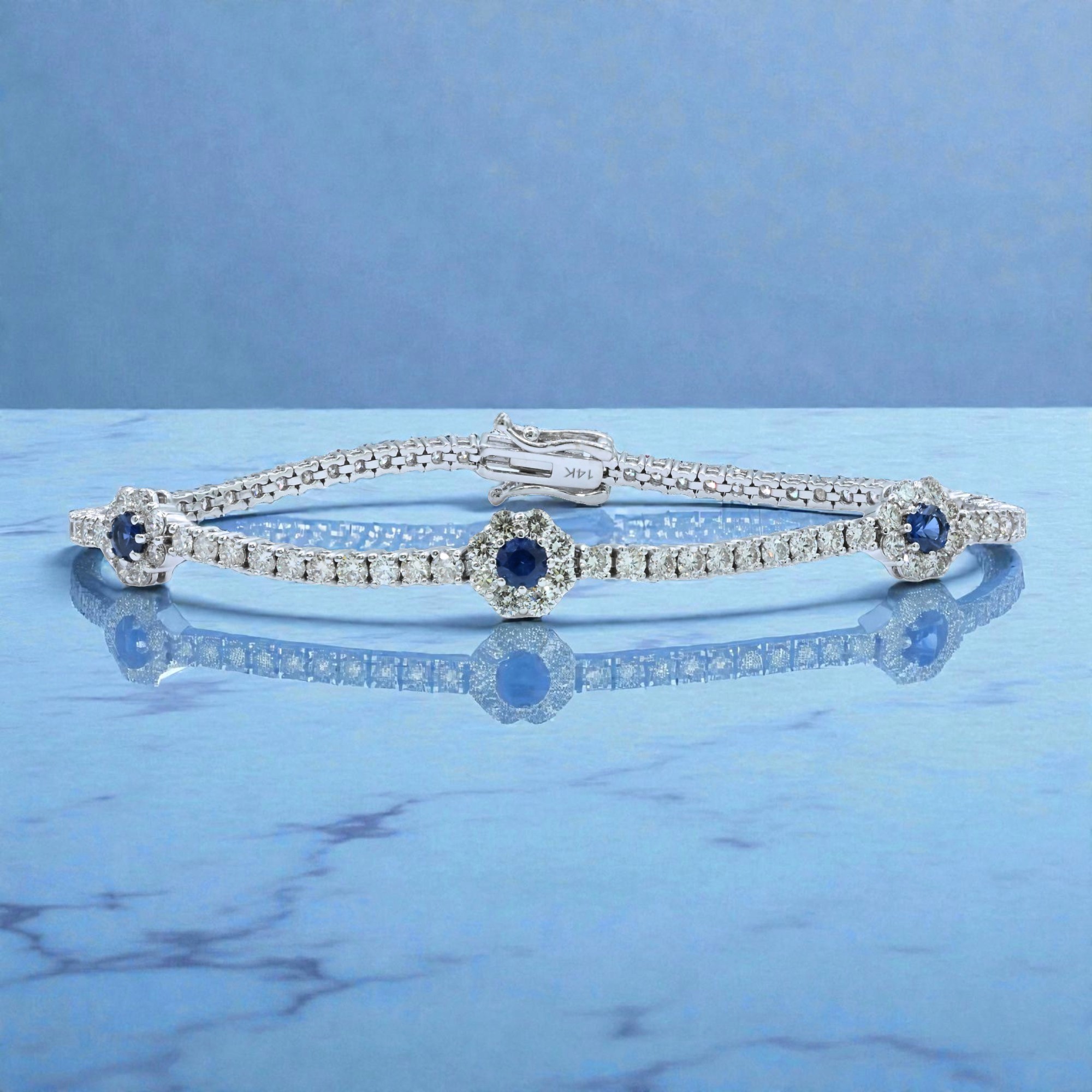 3 CT White Gold Flower Sapphire X Diamond Bracelet Copy